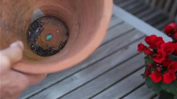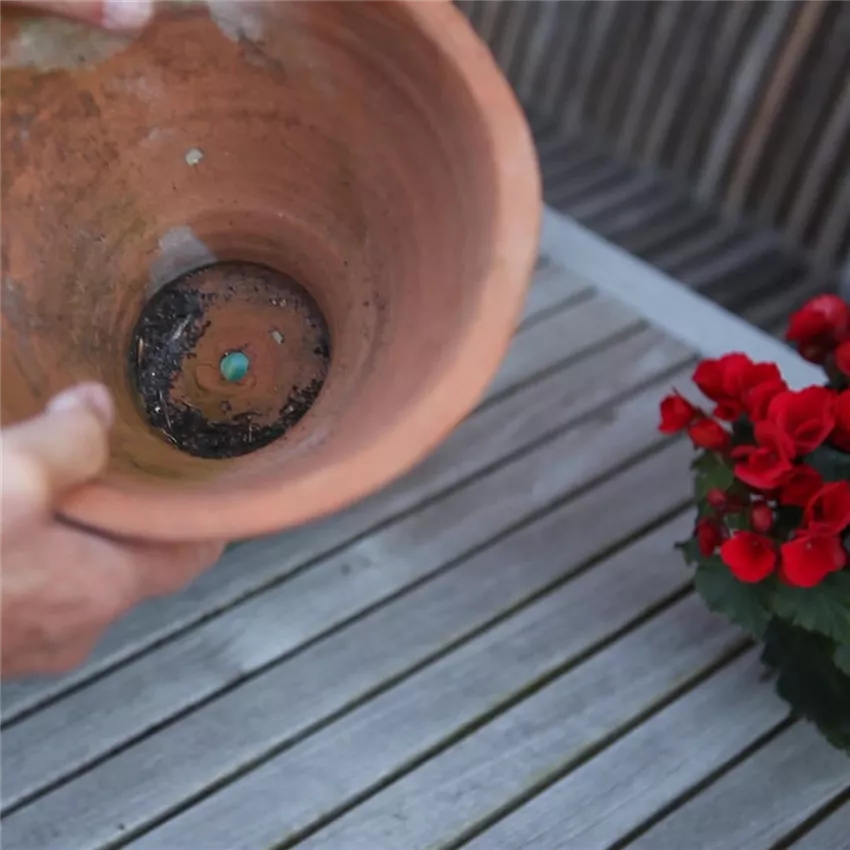 Um Staunässe zu vermeiden, wählen Sie nur Kübel mit einer Öffnung an der Unterseite, aus der das überschüssige Gießwasser abfließen kann.