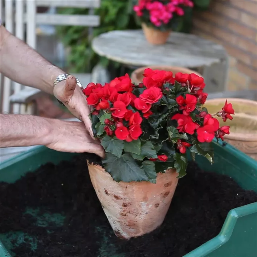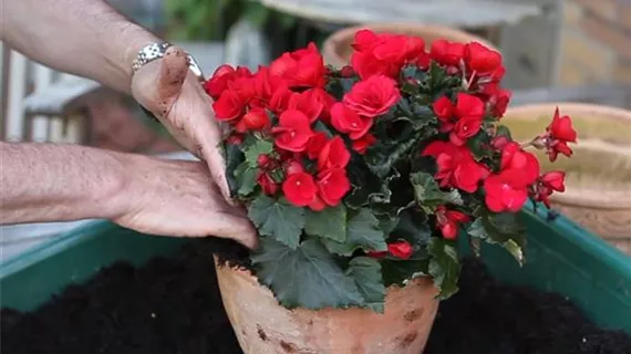 Die Wurzelballen sollten ca. 2 cm unter dem Rand liegen, damit Sie später genug Platz zum Gießen haben.