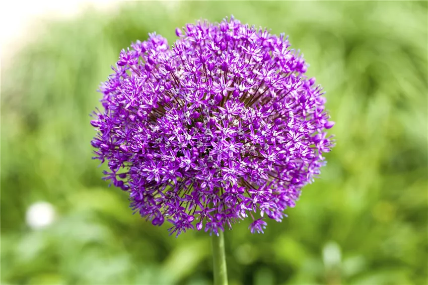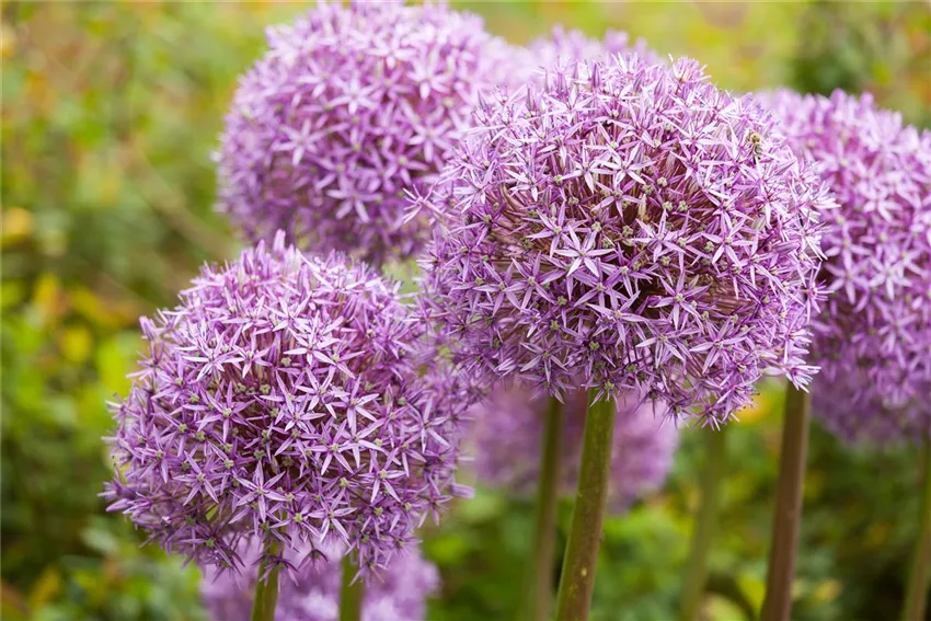 Große, majestätische Zierlauchsorten, die bis zu 150 cm hoch werden können, überragen häufig sogar Ziersträucher und erstaunen jeden Betrachter. Allium ‚Forelock‘, Allium giganteum , Allium ‚Gladiator‘ und Allium ‚Ambassador‘ heißen solche meist violett blühenden Riesen.