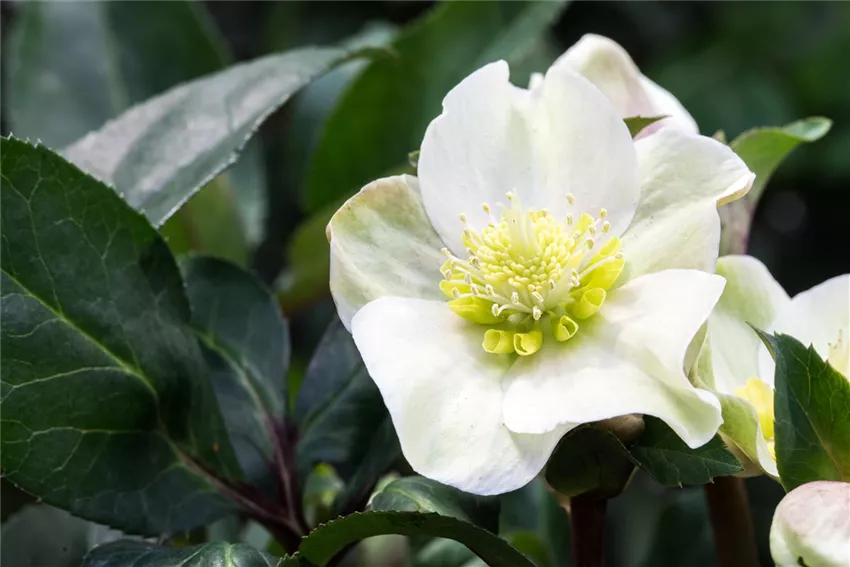 Beginnen wir gleich mit einem kleinen botanischen Wunder. Die Christrose (Helleborus) schläft selig, während andere Pflanzen Knospen und Blüten produzieren. Sie zeigt nur ihre immergrünen Blätter. Doch kaum macht sich der erste Frost bemerkbar, erwacht sie zu blühendem Leben. Bis über die Weihnachtszeit hinweg zeigt sie ihren erstaunlich großen Flor in reinem Weiß. Ein fantastischer Begleiter durch die Winterzeit. Sollte harter Frost noch etwas auf sich warten lassen und die Zeit bis Weihnachten eher milde sein, entfaltet der Duftschneeball (Viburnum farreri) seine botanischen Künste. Mit seinen wundervollen schneeballartigen Blüten kommt der Vorgeschmack auf Schnee und Eis in den Garten, und er spart nicht mit seinem wundervollen süßlichen Aroma! Ein winterlicher Duftspender der Extraklasse!