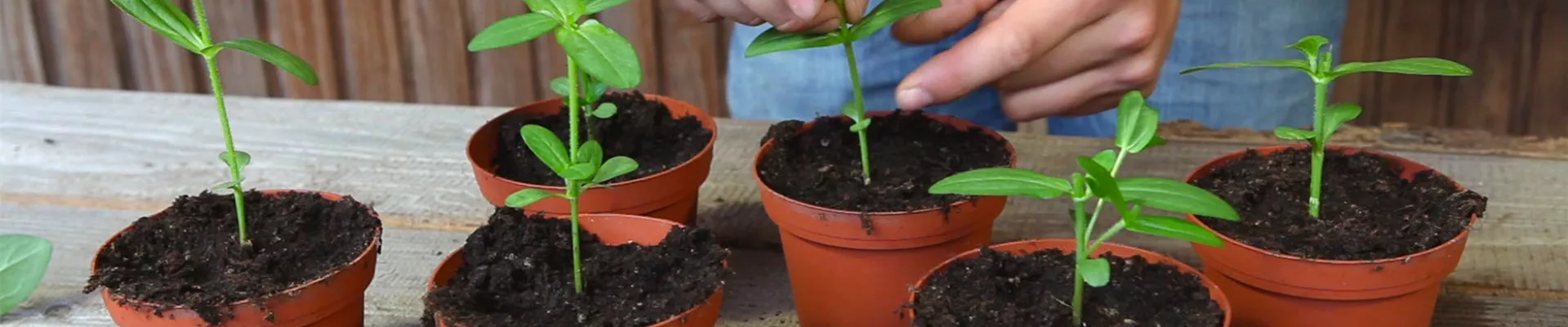 Zinnien-Jungpflanzen zum richtigen Zeitpunkt einkürzen, um besonders buschige Pflanzen zu erhalten!